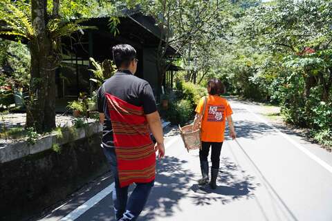 田媽媽餐廳「原夢觀光農園」的主廚暨創辦人江嬌媚(左),帶台南「阿霞飯店」主廚吳健豪(右)採集部落香料。