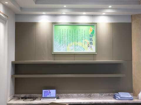 把田媽媽招牌掛在餐廳內最重要的牆面上,並以燈光重點投射,讓客人坐下來用餐,就能看到議蘆與田媽媽的連結。
