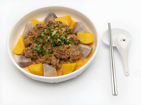 今年以芋頭粉蒸排骨打入12味決賽。這道料理配方來自於地方上的老總鋪師的指導,再由主廚和地方阿姨完美執行。兩位輔導師和主廚們共同討論如何在擺盤上再加分。