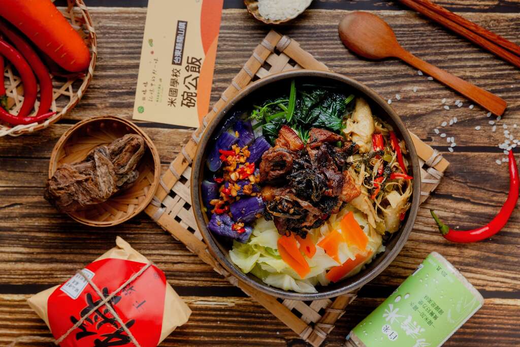 米國學校是台東關山鎮農會自營田媽媽班,主要提供米食食農教育並協助在地小農銷售商品,從2016年起供應復古大碗公飯後,就成為來此參觀的大小朋友必吃餐點,飯裡頭有各式在地蔬菜肉品製成的美味,更有在地美味白飯,一大碗公只賣100元,每月至少銷售2000碗。