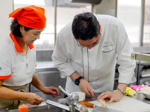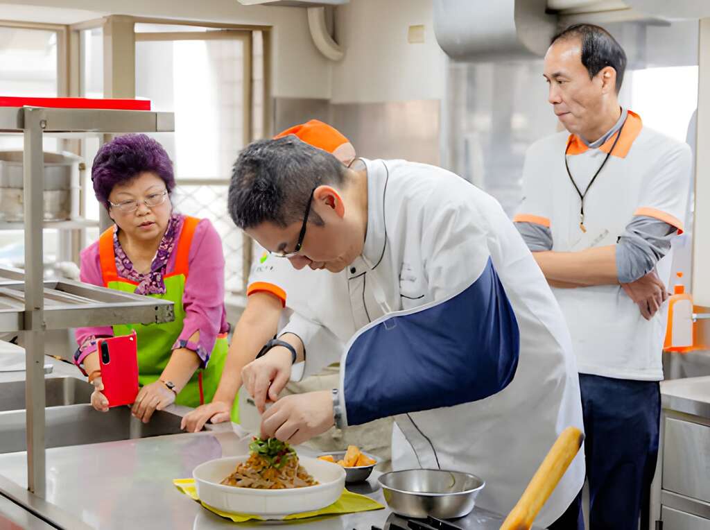 一邊仔細講解一邊親自示範,輔導師阿奎師是心靈芝旅養森食堂麗鳳姐的最大支持力量,讓靈芝料理也能跟上潮流,受更多消費者歡迎。