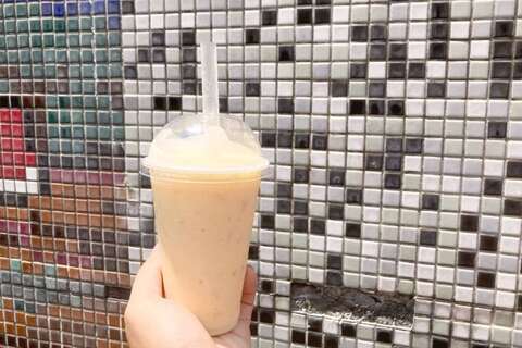 角板山商圈有許多店家會銷售現打的水蜜桃冰沙