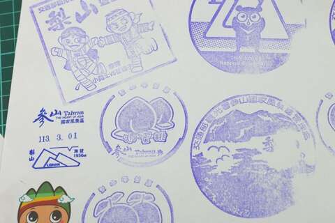 在梨山遊客中心的紀念章,也特地刻有水蜜桃圖樣