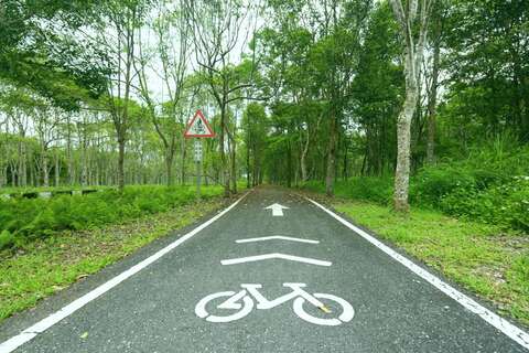 大農大富平地森林園區,有7條自行車道隱身在森林中,大致可分為北環系統的5條路線,合計9.5公里,以及南環系統的2條路線,計3.2公里。自行車道全程皆為林蔭下的平緩區間,可以舒服騎乘免曬太陽,非常推薦給各年齡層的遊客。在園區內與花蓮觀光糖廠皆有單車租賃業者。