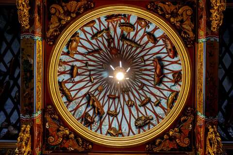 鎮海宮的藻井可見到漁網與各式魚類