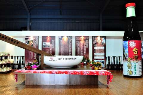 館內設有多個主題區域,包括時光走廊、文化室和醬油製程區等,展示了大同醬油的歷史、釀造過程及相關知識。其中最引人注目的,莫過高達4.3公尺的巨型醬油瓶與碗筷模型,吸引遊客拍照打卡。