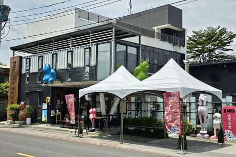 黑金釀造館的巨大醬油與碗筷,為遊客拍照打卡的熱點(大同醬油黑金釀造館提供)