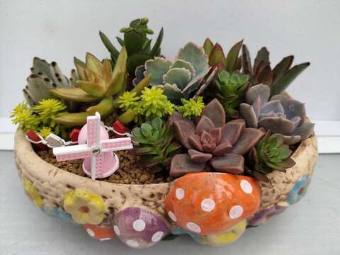 肥嘟嘟多肉植物園」,這裡種植了包括景天科與仙人掌科等多樣多肉植物。遊客在此能觀賞與購買多肉盆栽,若時間充裕還可參與DIY活動,如多肉植物組盆、酒瓶多肉植物設計、鋁線花籃製作、花器陶藝彩繪DIY等,靈活運些技巧更能打造自己專屬的多肉植物天地。