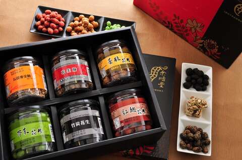 各式花生加工產品的禮盒(余順豐花生觀光工廠提供)