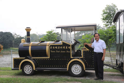 台南鴨莊鴨爸蘇清發與自己設計的遊園火車