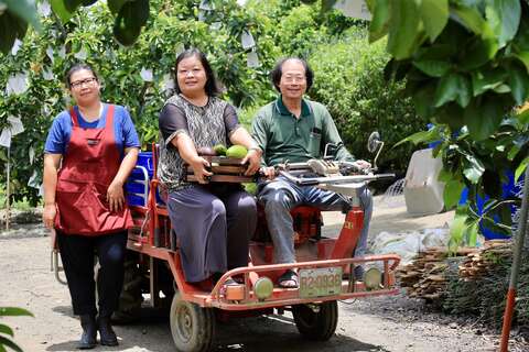 台南大內左岸幸福莊園主要種植酪梨與黃金果,圖為農場女兒楊子賢,主要協助爸媽照顧果園與電商宅配。
