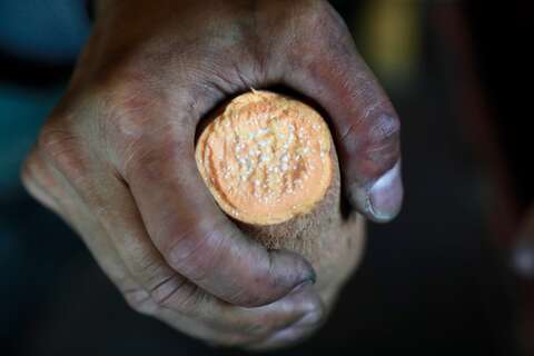 金山紅皮地瓜剛剛出土時,會帶著許多乳汁,這是黏液蛋白,也代表著營養豐富與新鮮。