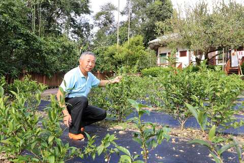 南投水里九芎坪民宿前就是陳敏聰的茶葉培育場所,裡頭有多樣特殊茶葉,外行人看不出,內行看都是寶。