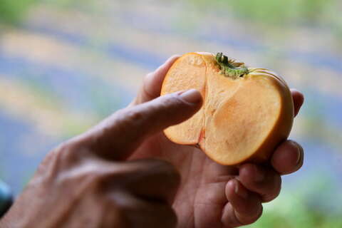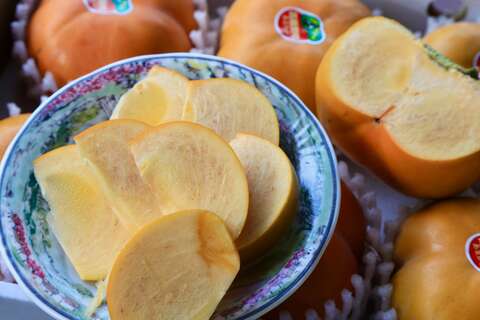 南投水里九芎坪果園的甜柿採自然農法種植,口感清脆,滋味非常清甜。