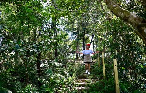 農場周邊森林覆蓋良好,李慧鳳帶領遊客漫步於林間步道,享受充滿芬多精與負離子的天然空氣浴場,體驗天地人的共生智慧。