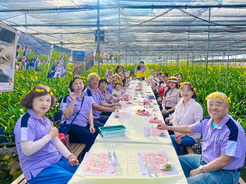 「農村城堡耕牛園」鄰近麗寶樂園,是個隱身於水圳旁的賞花秘境,擁有佔地一公頃的網室專門栽培鮮黃亮麗的文心蘭。為了便於遊客觀賞,園區特別採用高架栽培,盛開的蘭花就恰好位居胸口高度,漫步其中彷彿置身金黃色的波浪中。除了賞花,這裡也提供「苔球DIY」手作,讓大人小孩能親手觸摸植物,將這份優雅的綠意帶回家,延續新春的美好心情。