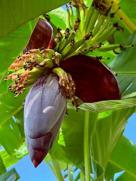 現代香蕉都是「三倍體」,亦即沒有種子繁殖能力,就跟馬+驢交配後的騾一樣沒有生殖能力,因此每當香蕉開出一個龐大的紫色、像子彈頭的總狀花序後,接著藏在這苞片裡的香蕉花就會陸續綻放,但不用等待授粉就會直接結果變成香蕉。