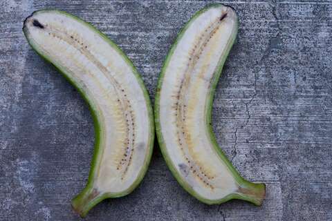 通常植物都有種子,那香蕉呢?當然也有。把香蕉直直剖開,就能清楚看見裡頭有著許多黑點,那就是「現代」香蕉已經退化的種子皮。