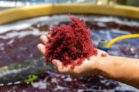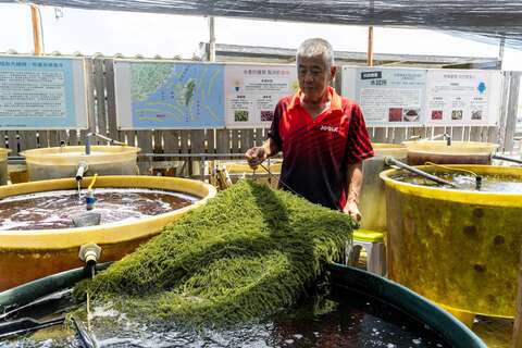 陳老闆向沖繩學習自然養殖法,不依靠藥劑,雖然賣相不若傳統養殖法,卻更加健康且安心。招牌海葡萄有「綠色魚子醬」的美譽,富含維生素、礦物質,是高價值的食用藻類。除了海葡萄外,白灣坑漁場也養殖麒麟菜、紅葡萄等藻類。