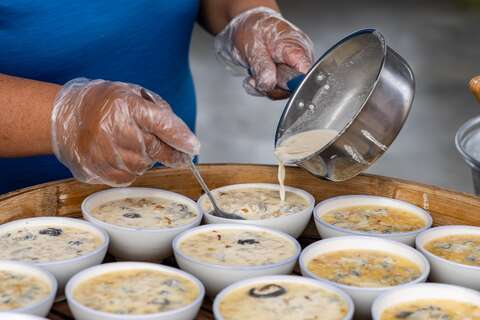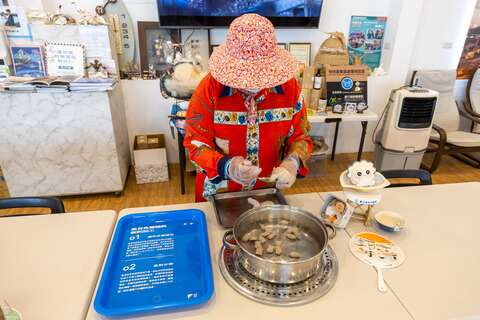 親自下鍋料理剛捕撈的白蝦,養殖過程看得見,吃得更安心!吃蝦的同時,一邊聆聽七股漁村古謠「數魚歌」的文化。早期虱目魚苗珍貴,每尾以單尾計價,僱用專門數魚工現場點數,舀水手與數魚歌聲同時不中斷,傳承七股漁村獨特漁法與文化。