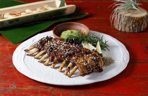 Nick主廚透過南法燉羊肉,帶給王家燻羊肉王錦泰新靈感。原本味道濃郁的烤羊排,沾上墨西哥龍艾優格醬,不僅為整道菜增添顏色,也舒緩了原本的油脂感,墨西哥龍艾製成優格醬後,香草植物的濃烈風味變得淡雅,令人意外的是,本來風味就很飽足豐滿的烤羊排,沾上醬料後竟被拉出了空間,讓味蕾清爽,羊排與沾醬,一重一輕,相得益彰。