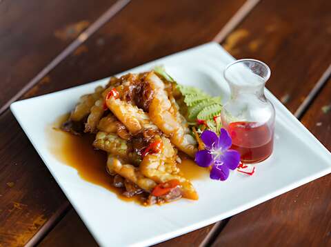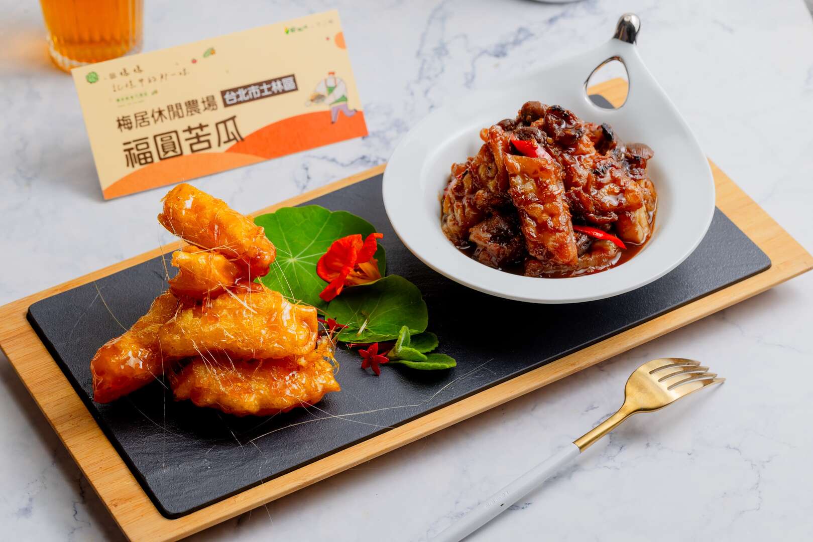 福圓苦瓜是梅居休閒農場的經典菜式,具備高度的代表性與榮譽。這道料理成功進入了 2024年田媽媽傳承新食選拔決賽,並獲得了「12味決賽榮耀」。