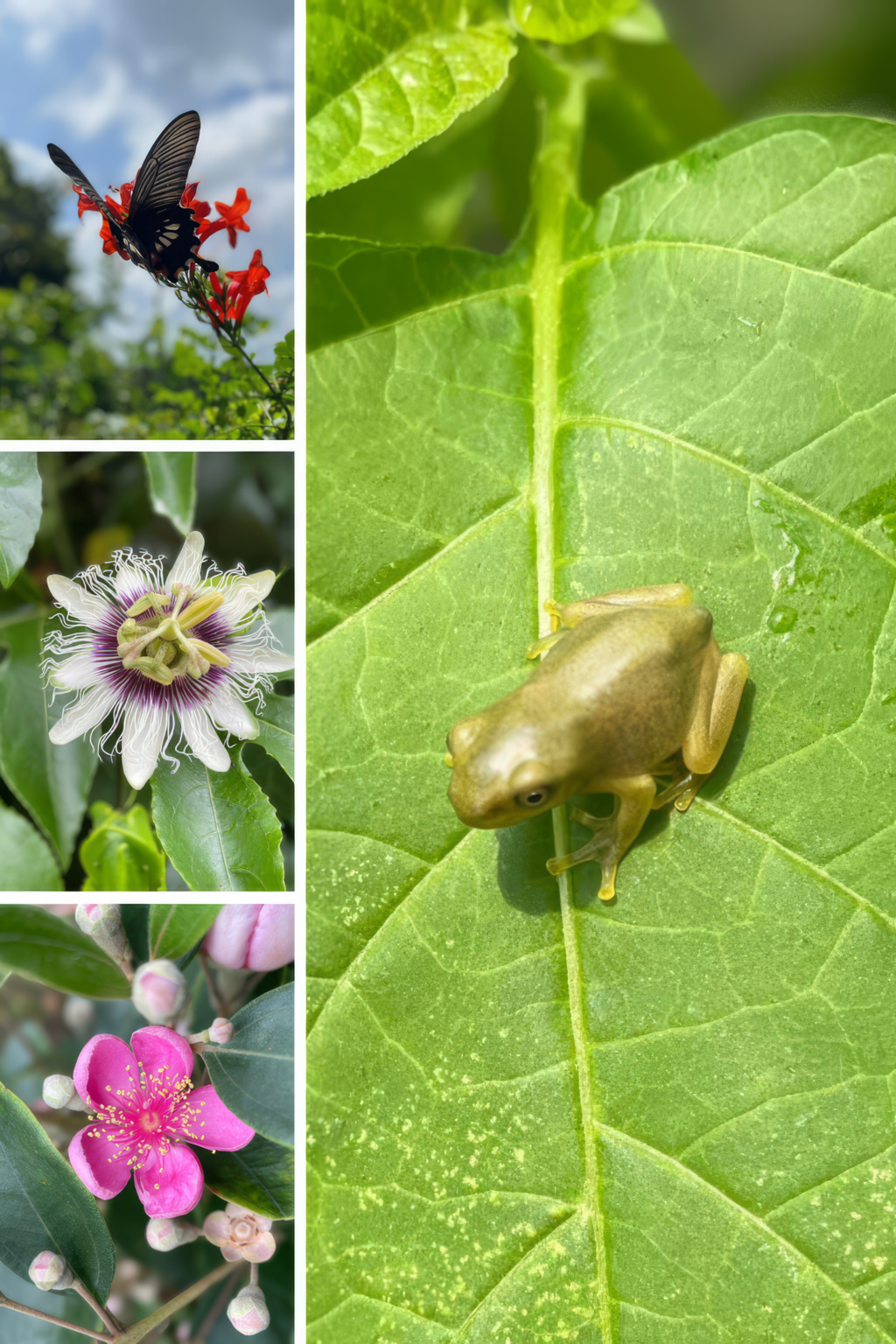 來到農場,也別忘了放慢腳步,仔細觀察周遭的花草樹木、蟲鳥動物,常有意想不到的發現,艷麗的桃金釀、可愛的小蛙...也是看點之一喔!