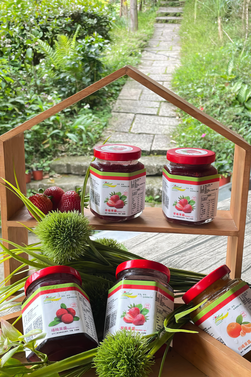 草莓果醬、楊梅果醬、柑橘果醬、桑椹果醬、草莓盆栽移植、彩繪甲蟲、竹器童玩製作....等。