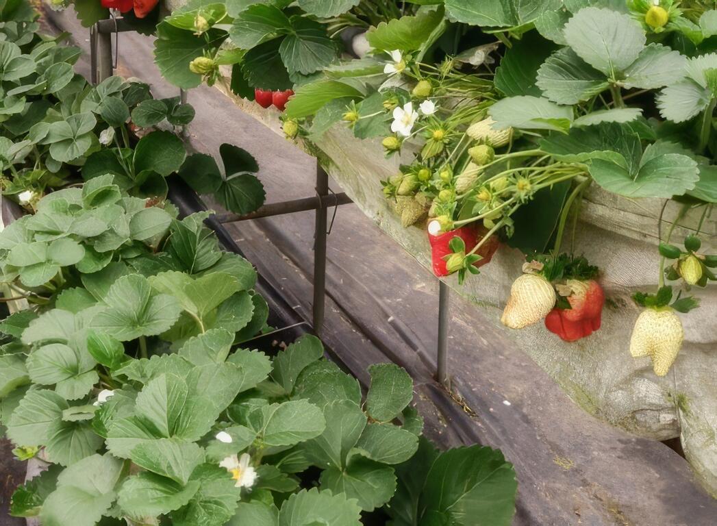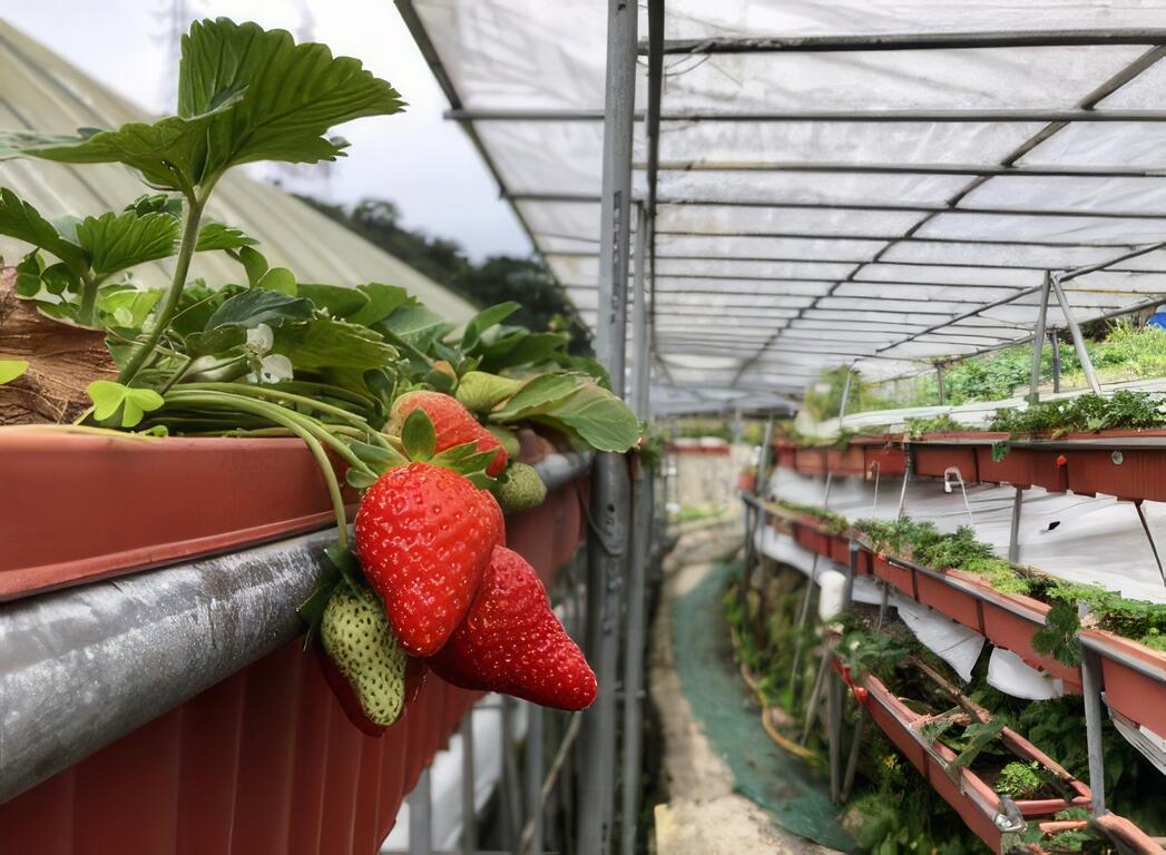 山櫻草莓園老闆採用「高架」與「平地」二種栽種的方式,讓草莓園區內路段平緩易行,亦採用雨棚栽種環境,讓前來體驗採果的小朋友、爸媽、情侶們有一個舒適又安全的環境,即使是下雨天也不怕唷~