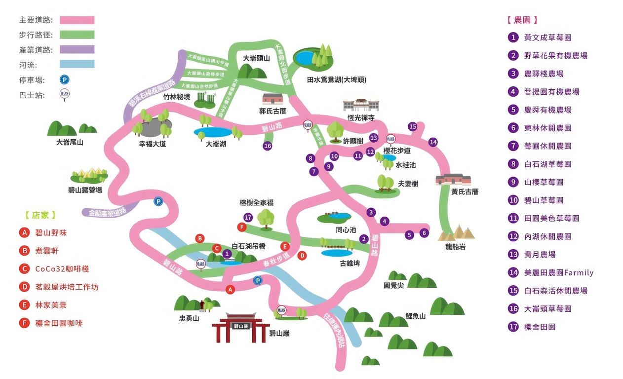 | 白石湖草莓園 | 山櫻草莓園 | 碧山草莓園 |