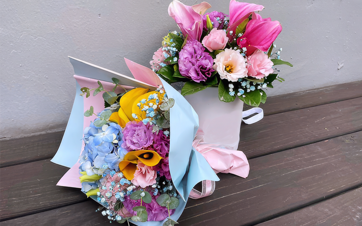 彩色海芋形姿優雅、外形簡單清純,各種不同顏色更代表不同的浪漫花語。讓花藝師與你一起手作心藝花盒或彩芋花束,繽紛的彩芋配上美麗的花材,將你的心藝傳達給最心愛的人。