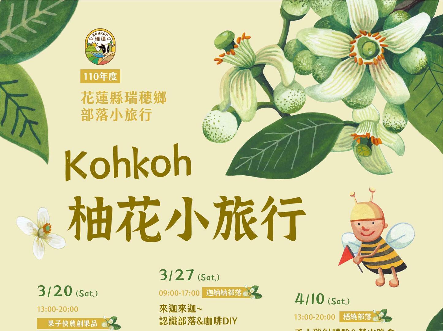 3月20日12點50分瑞穗火車站西站集合—三月柚花香~來果子俠聞柚香—阿美姑娘秀文廚房上菜—賞螢火蟲—3月20日20點賦歸溫暖的家。