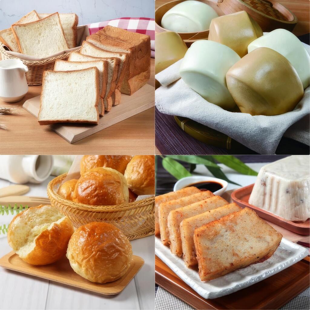 蔬果烘培箱、鮮奶吐司、黑糖饅頭、餐包、戚風蛋糕、蘿蔔糕