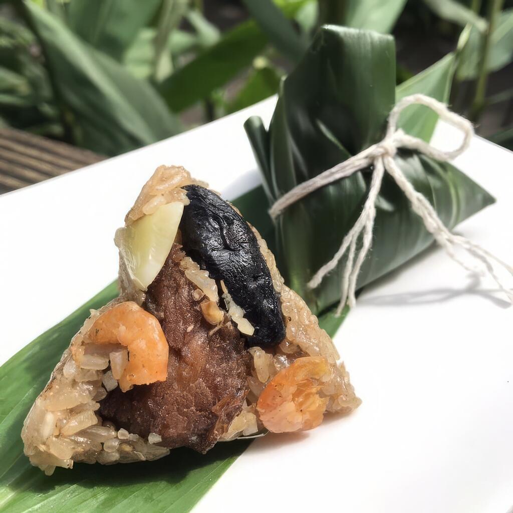文山包種茶粽 食材:糯米、精燉滷豬肉塊、香菇、花生、金勾蝦、油蔥酥、特焙文山包種茶等。。