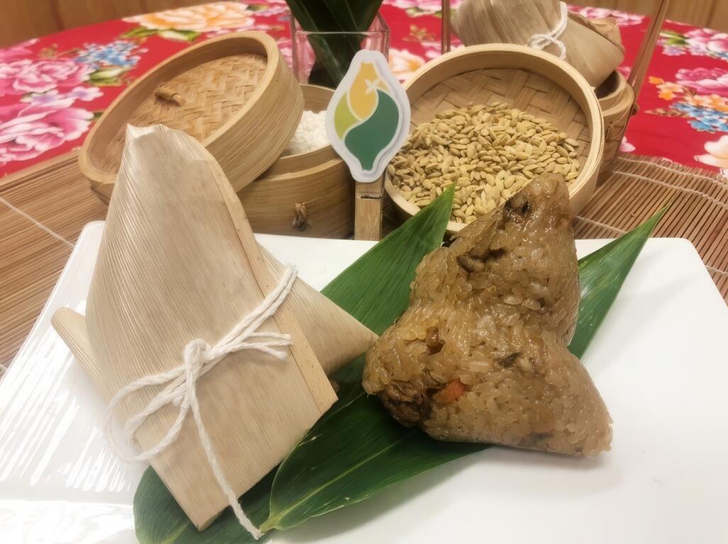 來自宜蘭員山「花之泉生活坊」親自細心栽培芬香而不嗆辣的野薑花、有機野菜,結合在地嚴選食材研發出今年的端午好粽;「野薑花粽」採用自家有機野薑,切碎後拌入糯米,加入特選梅花豬肉、上等蝦仁、嚴選香菇、蒜頭等在地食材,經過巧手調味後以鮮採野薑花葉包覆於外,蒸熟後撲鼻而來的野薑花香氣十足讓人食指大動。
