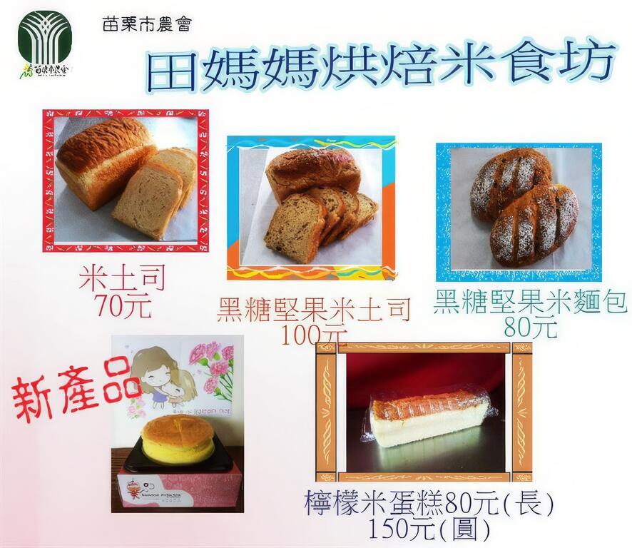 冰種吐司、紫米核桃吐司 、芋頭吐司、葡萄吐司、火腿起司吐司、紅豆吐司 、椰香吐司、秈香米捲、戚風蛋糕、秈香米鳳梨酥、中式大餅