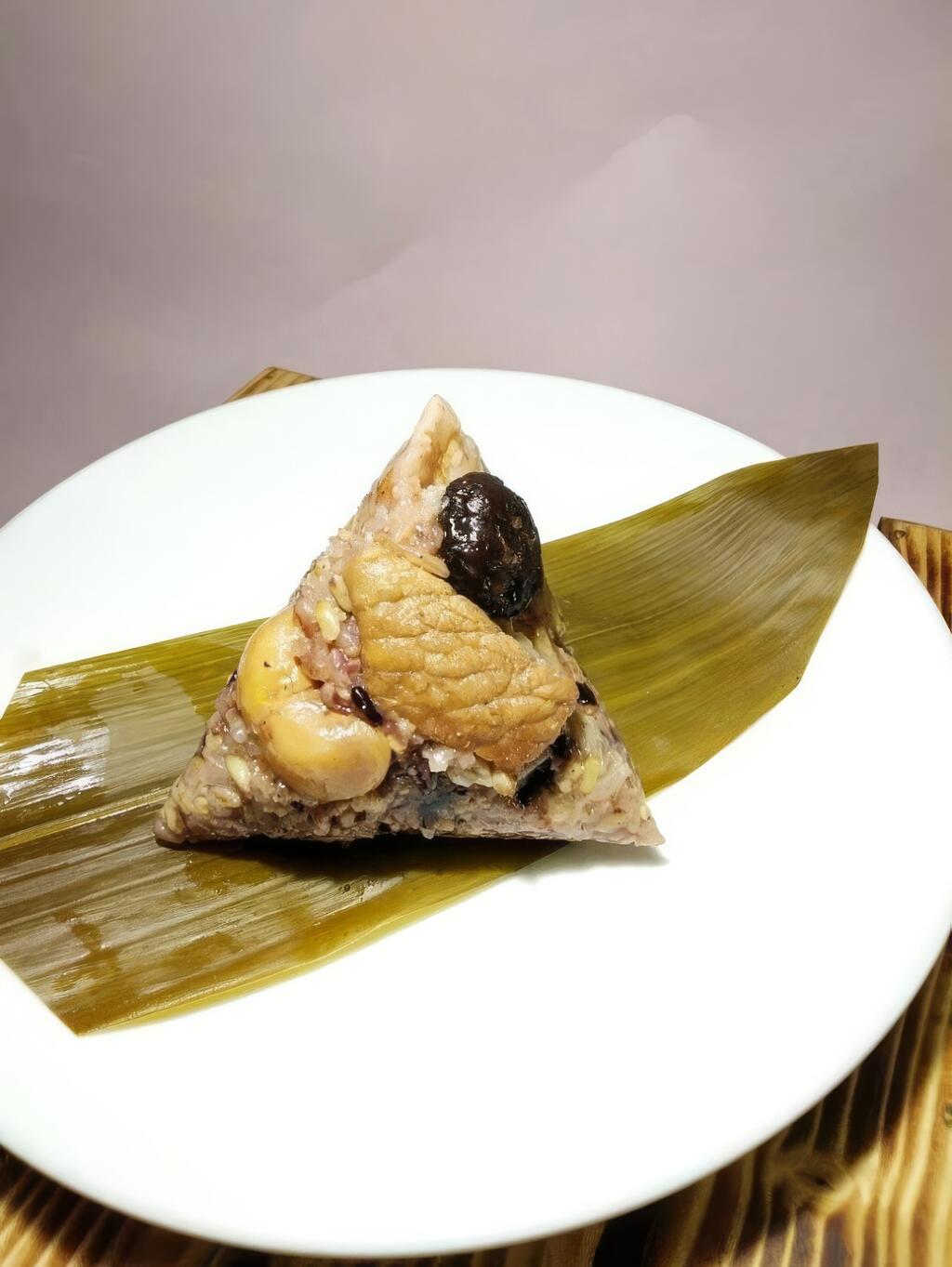 古早味肉粽 食材:圓糯米、CAS認證豬肉、南投香菇、嚴選金鉤蝦、慢火滷汁、鹹蛋黃1/4。