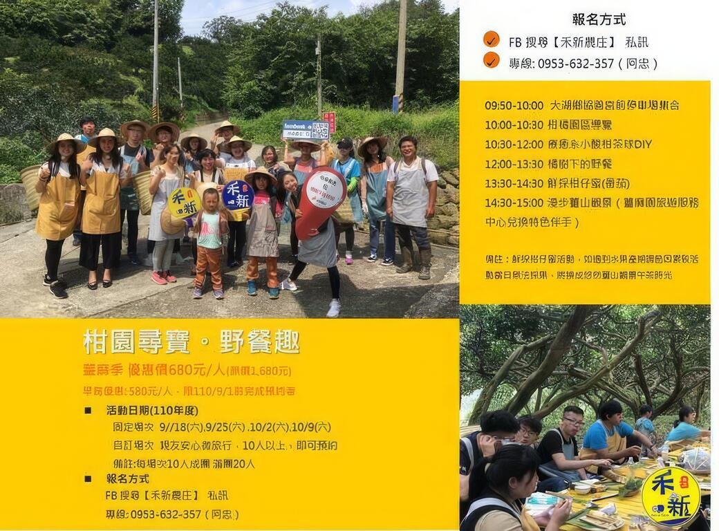 週六酸甜療癒微旅行,柑橘園有天然空調系統,採果、野餐不怕日曬天氣熱!夏日野餐避暑就來 禾新農庄 參加 柑園尋寶野餐趣 !