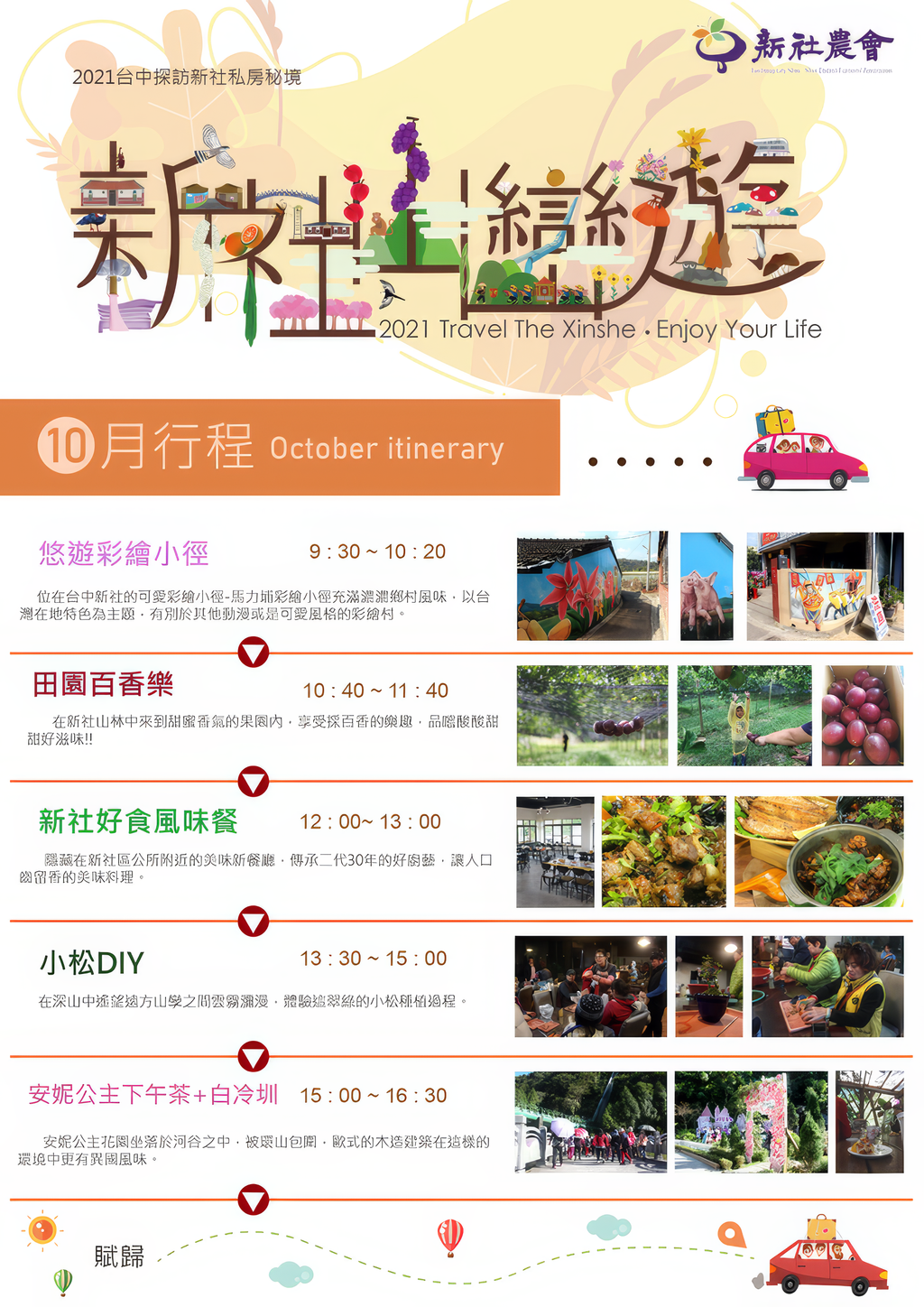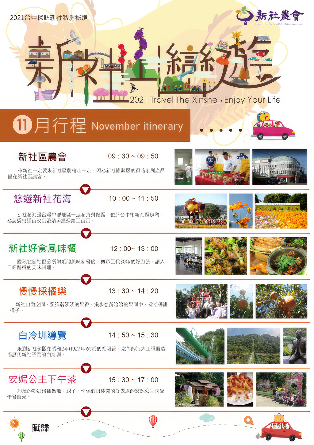 2021新社山巒遊,每個月都準備了不同的行程,就是想要帶大家看見專屬新社的美景、吃到新社的獨特果香!