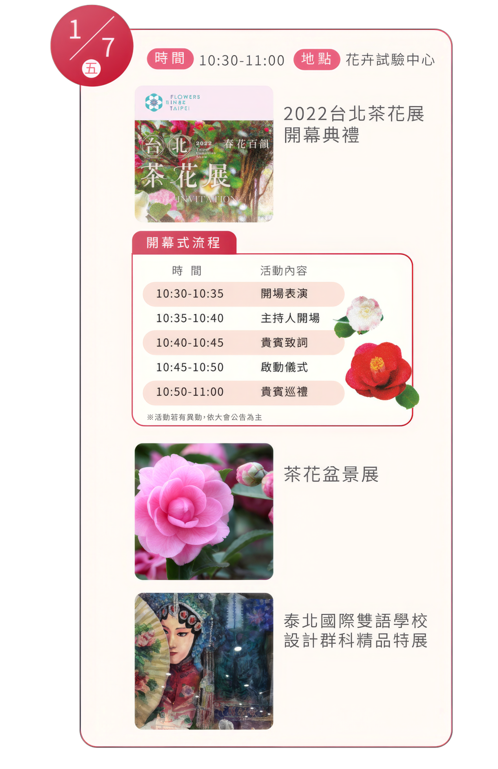 春天百花開,今年第一站先來台北茶花展!活動期間有許多快閃活動,歡迎大家來參加!