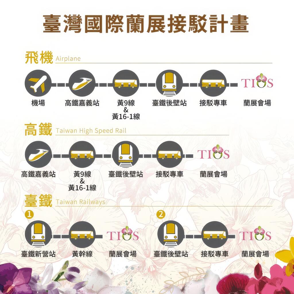 高鐵嘉義站→轉乘大台南公車(黃9線)→臺鐵後壁站下車→轉乘蘭展接駁專車→2022蘭展會場