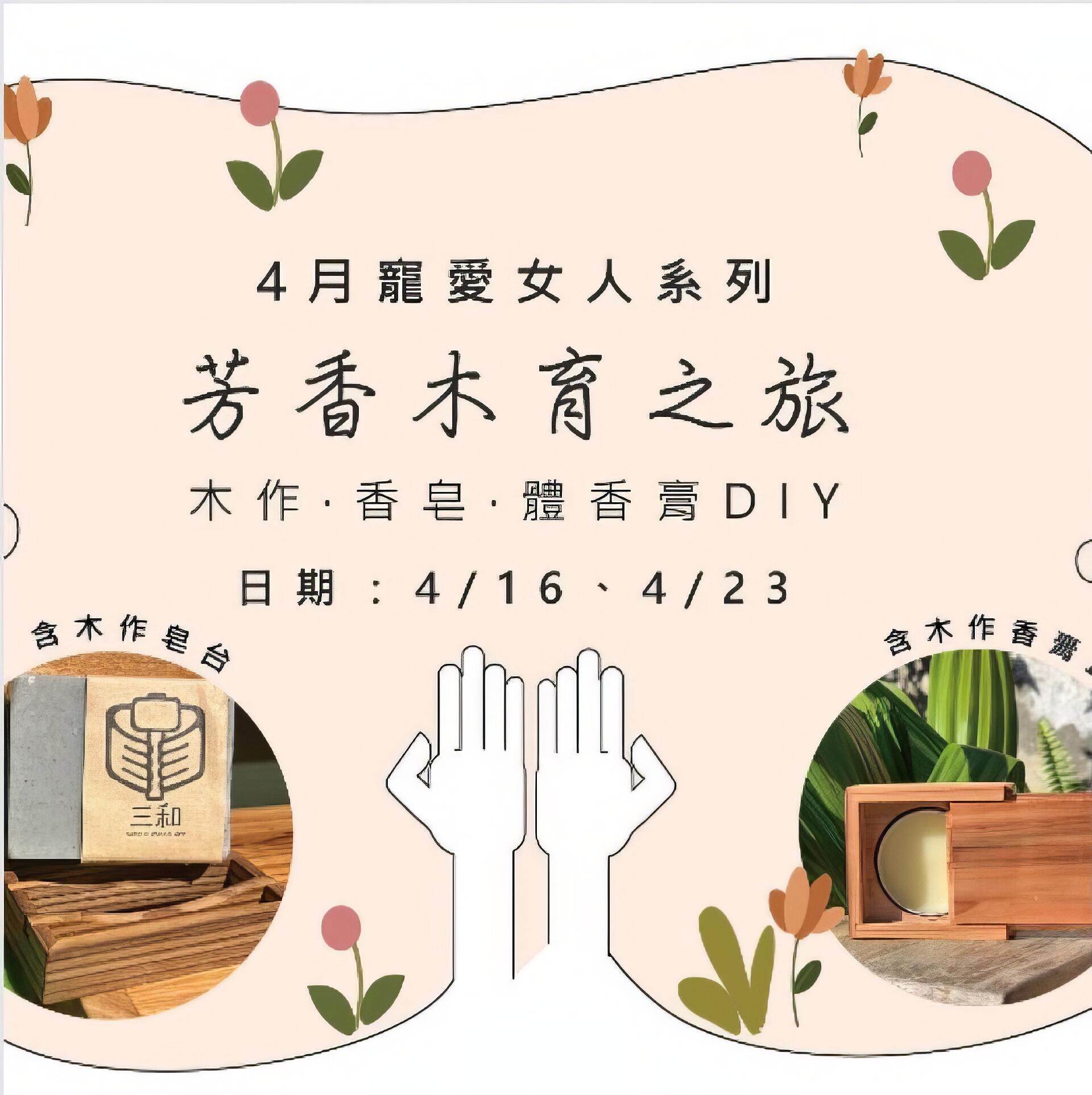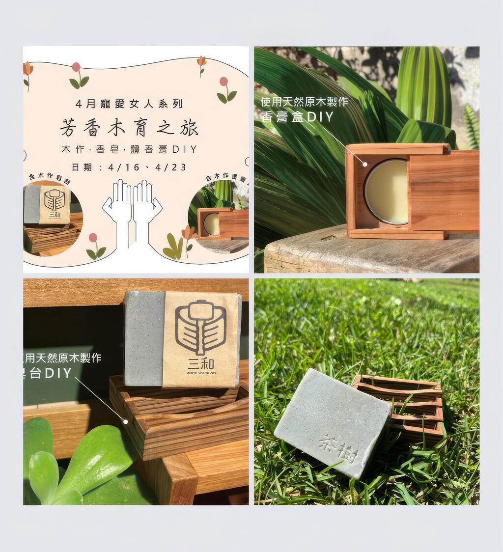 本次芳香木育之旅結合了 三和木藝工作坊執手堂 傅老師 的專業手藝,體香膏使用專櫃級香氣及天然油品,手工皂材料是適合夏天的微涼感香皂,搭配高質感木作手工藝,完成後的成就感真是超過一百分呀!