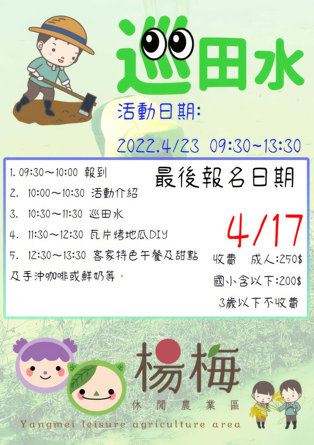 帶孩子們到田裡觀察春分種下的秧苗成長狀況,除去雜草、驅逐福壽螺,親自體驗如何讓稻苗健康茁壯,還有好玩的烤地瓜DIY,一起來玩吧。