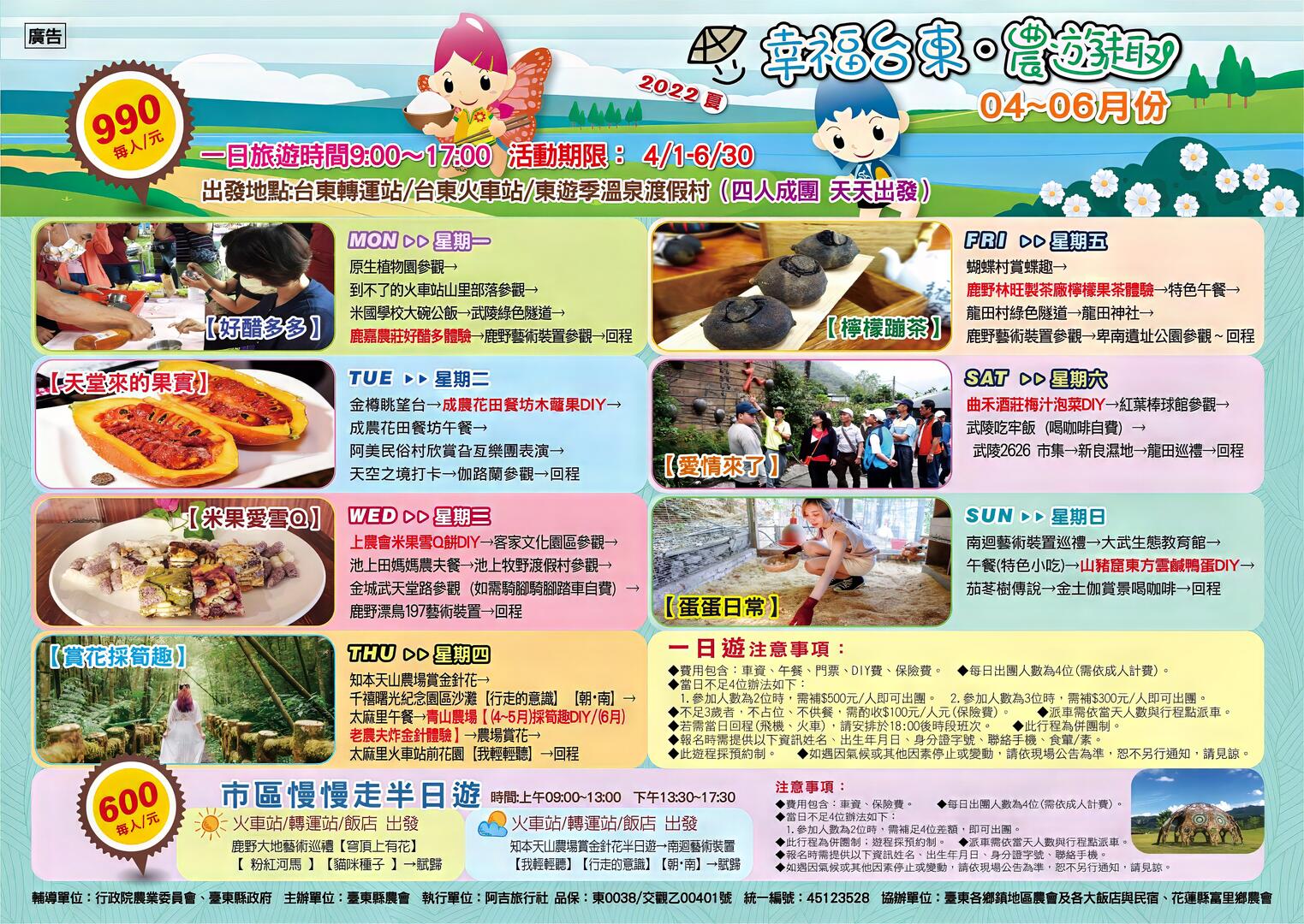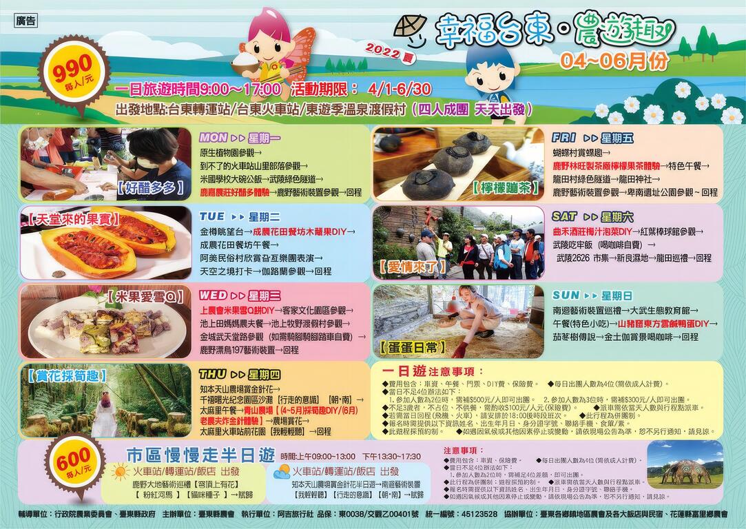 台東幸福農遊趣四~六月最新行程!四人成團,天天出發!一日遊或半日遊都好玩喔!