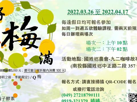 來南投國姓鄉製作好梅,是春季限定梅好體驗!想起梅子酸酸甜甜的滋味口水不自覺流下來~趕緊出發體驗梅好時光吧!