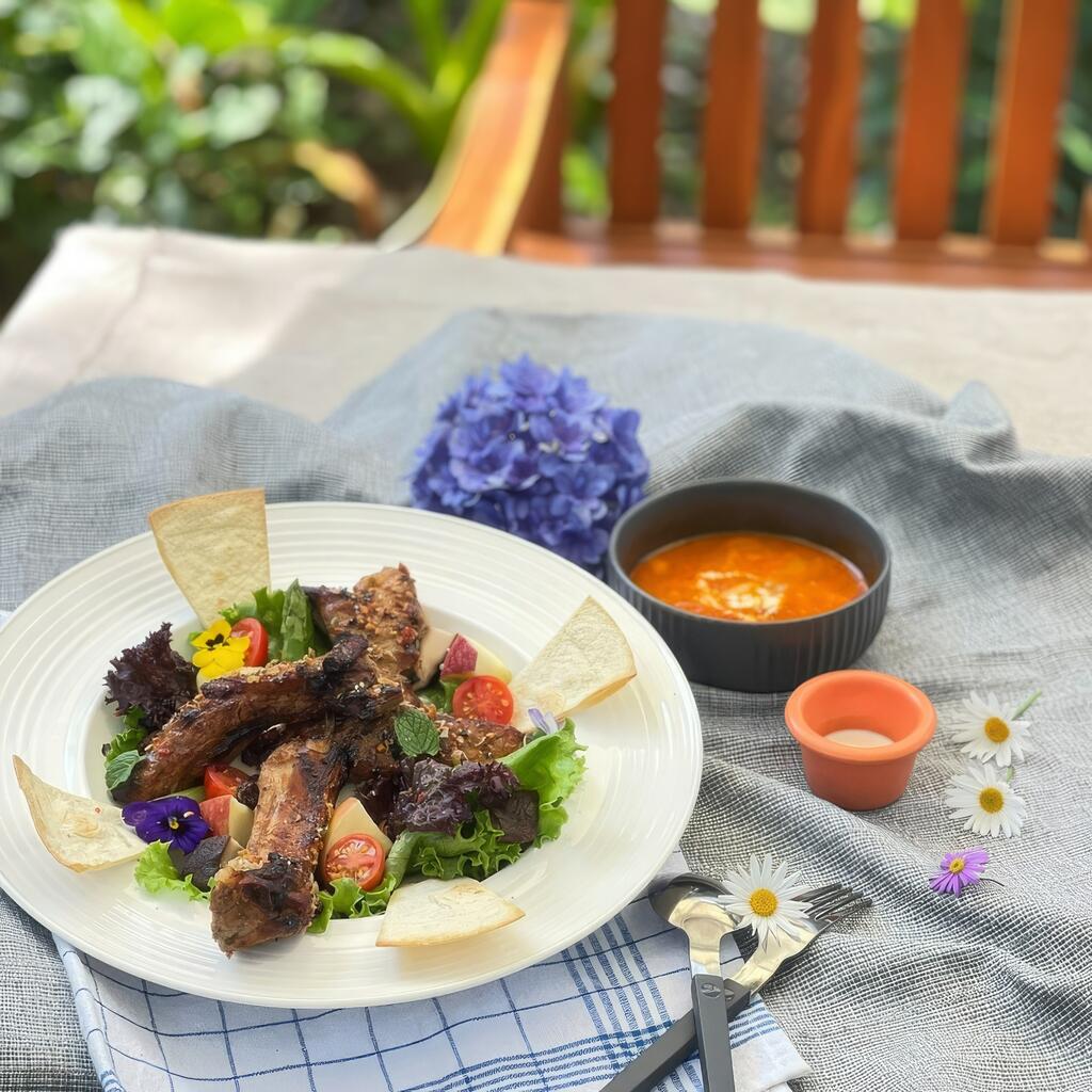 果香搖滾烤肋排、臉紅紅番茄湯,一起來繡球花賞相聚,動感熱血之際,品嚐炙烤的美味 (每份$520)。