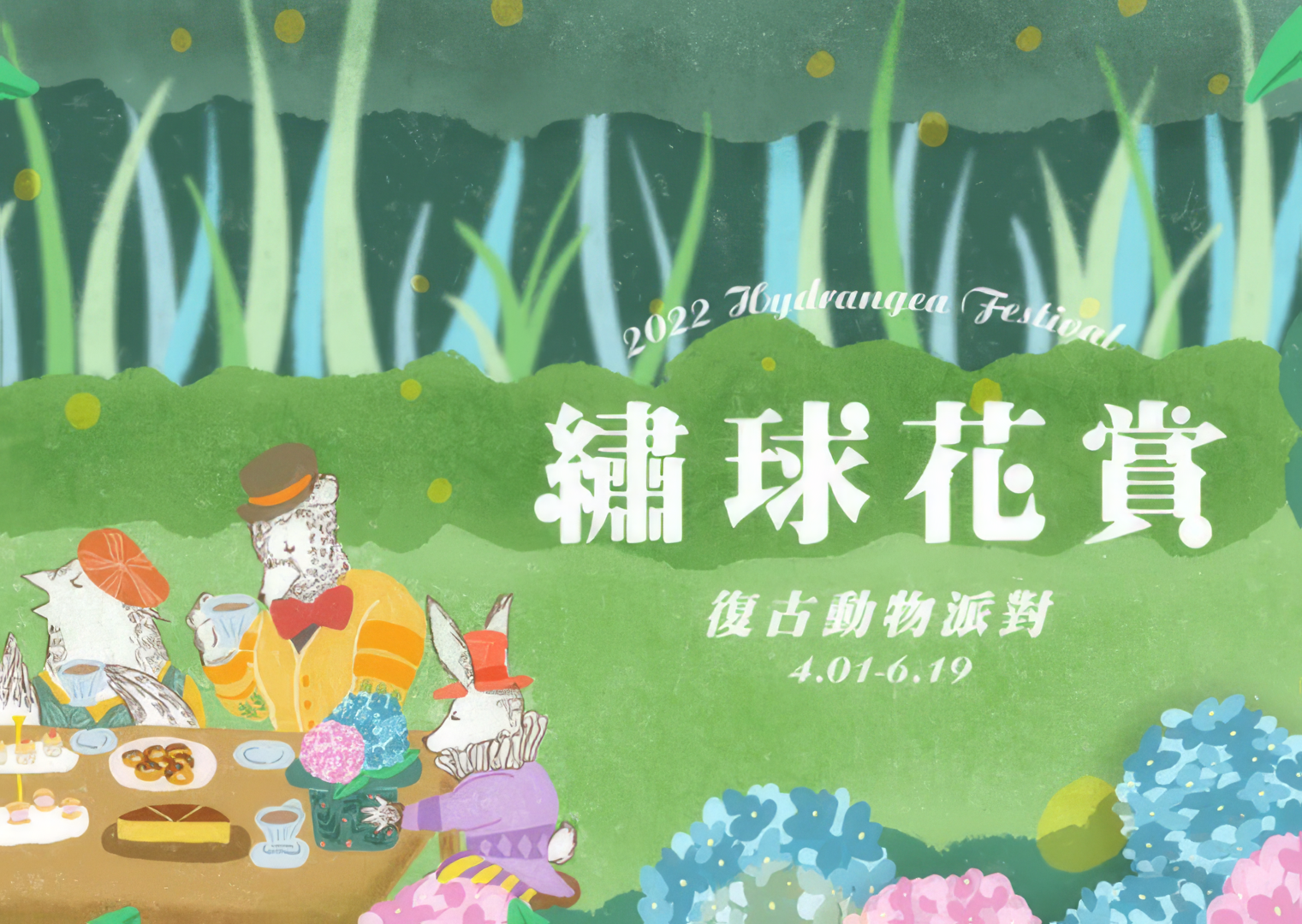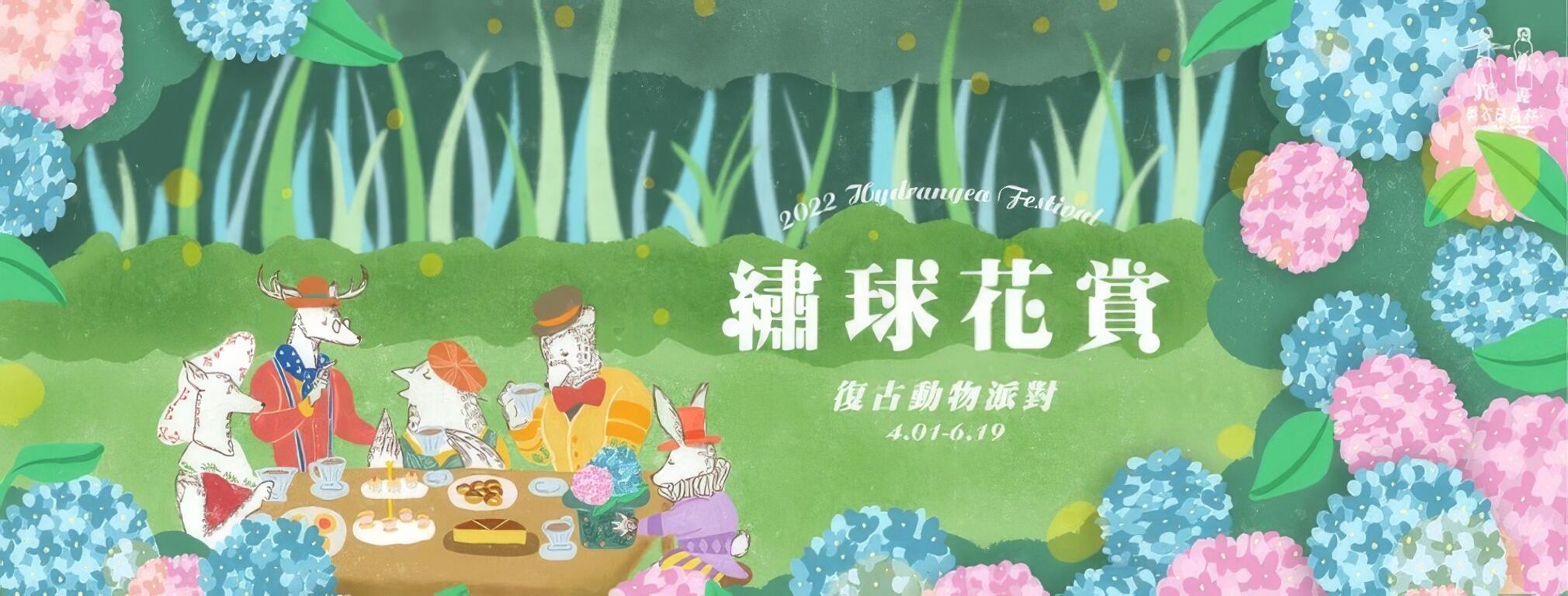 薰衣草森林裡奢華的復古派對,悄悄的在初夏動了起來,今年以「繡球花賞—復古動物派對」為主題,邀請吹著薩克斯風的悶騷熊、穿著典雅洋裝的花心鹿、最會變魔術的魔術兔和頭戴藝術家帽的畫家鳥在森林大開Party,帶旅人感受復古派對,也沉浸被繡球花包圍的絕美花景裡!園區全面配合中央流行疫情指揮中心之防疫規定,請旅人安心來森林~