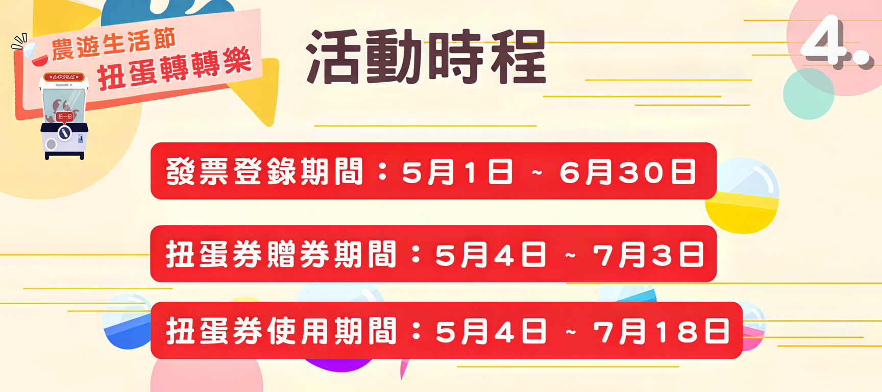 扭蛋券贈券期間:5月4日 ~ 7月3日