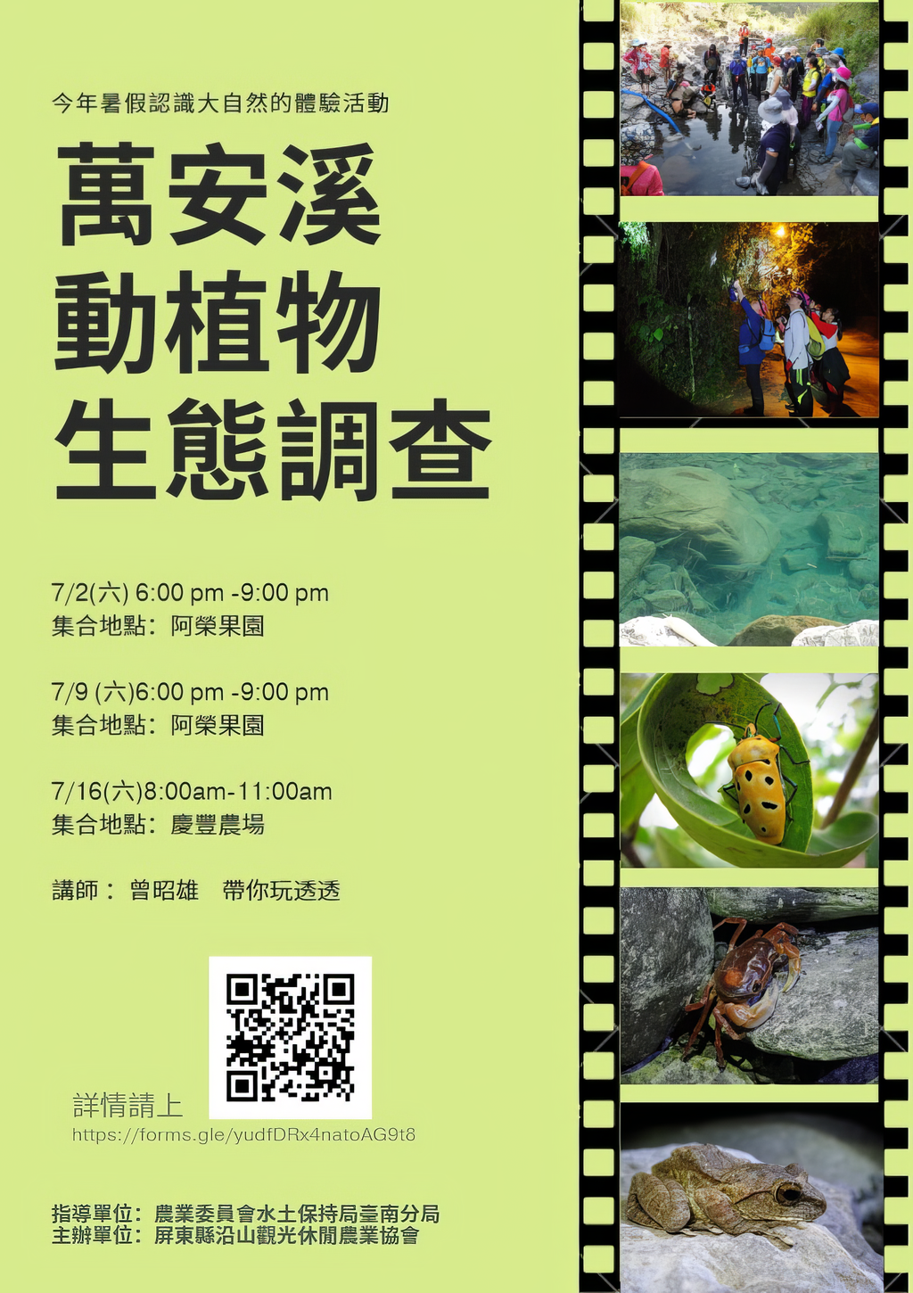 邀請曾昭雄生態老師7月份(三梯次)帶大家來去萬安溪玩透透~機會難得 人數有限!