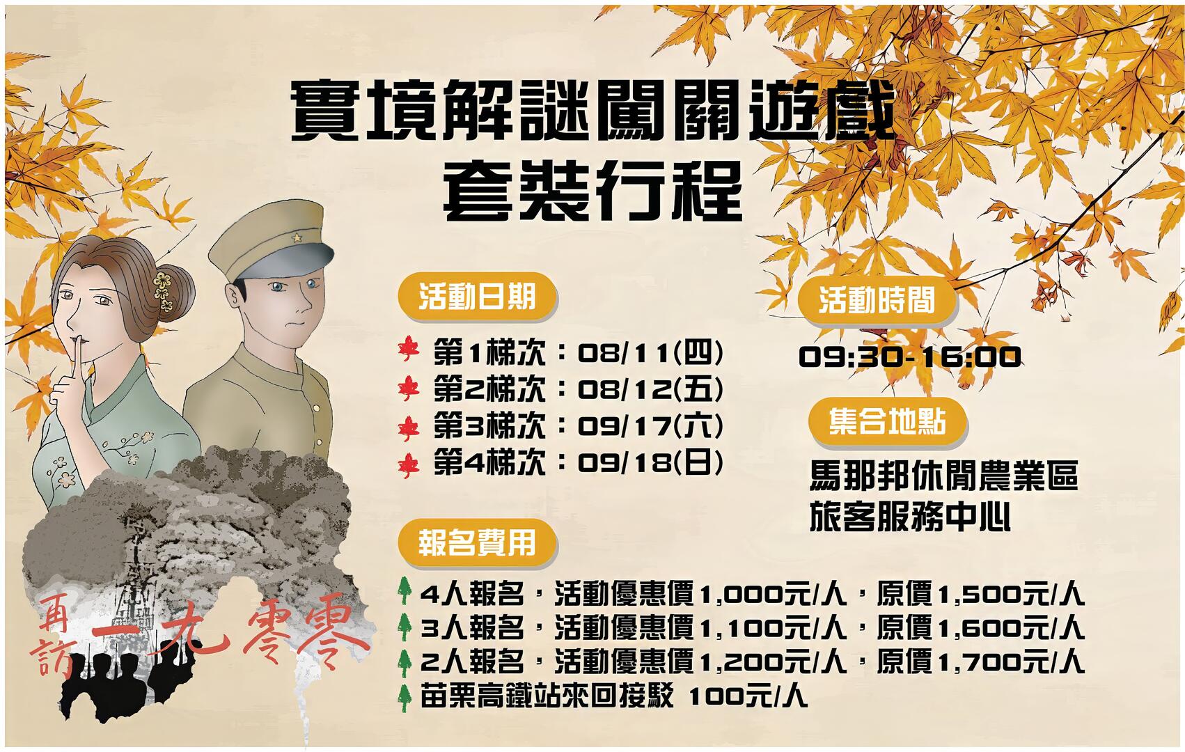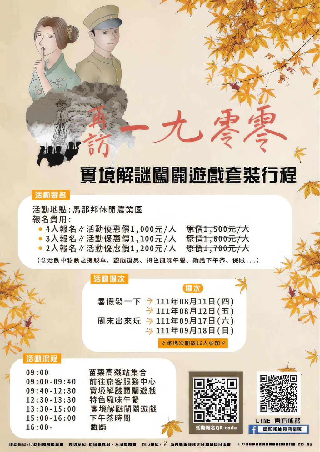 馬那邦休閒農業區【再訪1900實境體驗遊戲】套裝行程2.0